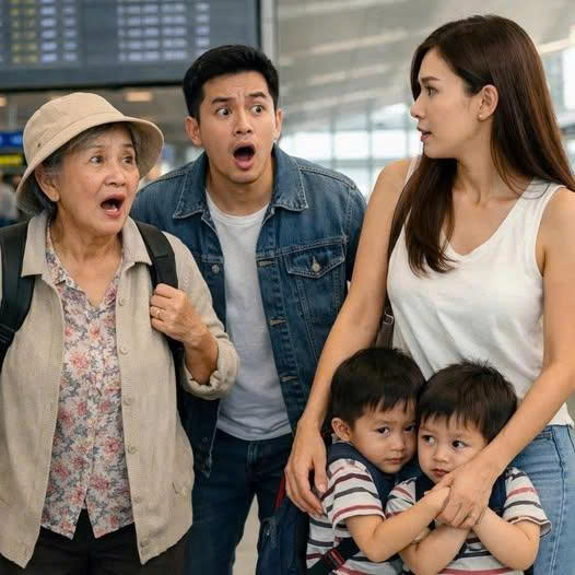 Trước mắt bà, cách vài mét… là một người phụ nữ mặc áo sơ mi trắng giản dị, tóc búi gọn. Cô đang kéo vali nhỏ, tay kia dắt hai đứa trẻ tầm ba tuổi, một trai một gái. Hai đứa bé giống nhau đến kỳ lạ, đôi mắt sáng, mũi cao, làn da trắng hồng.