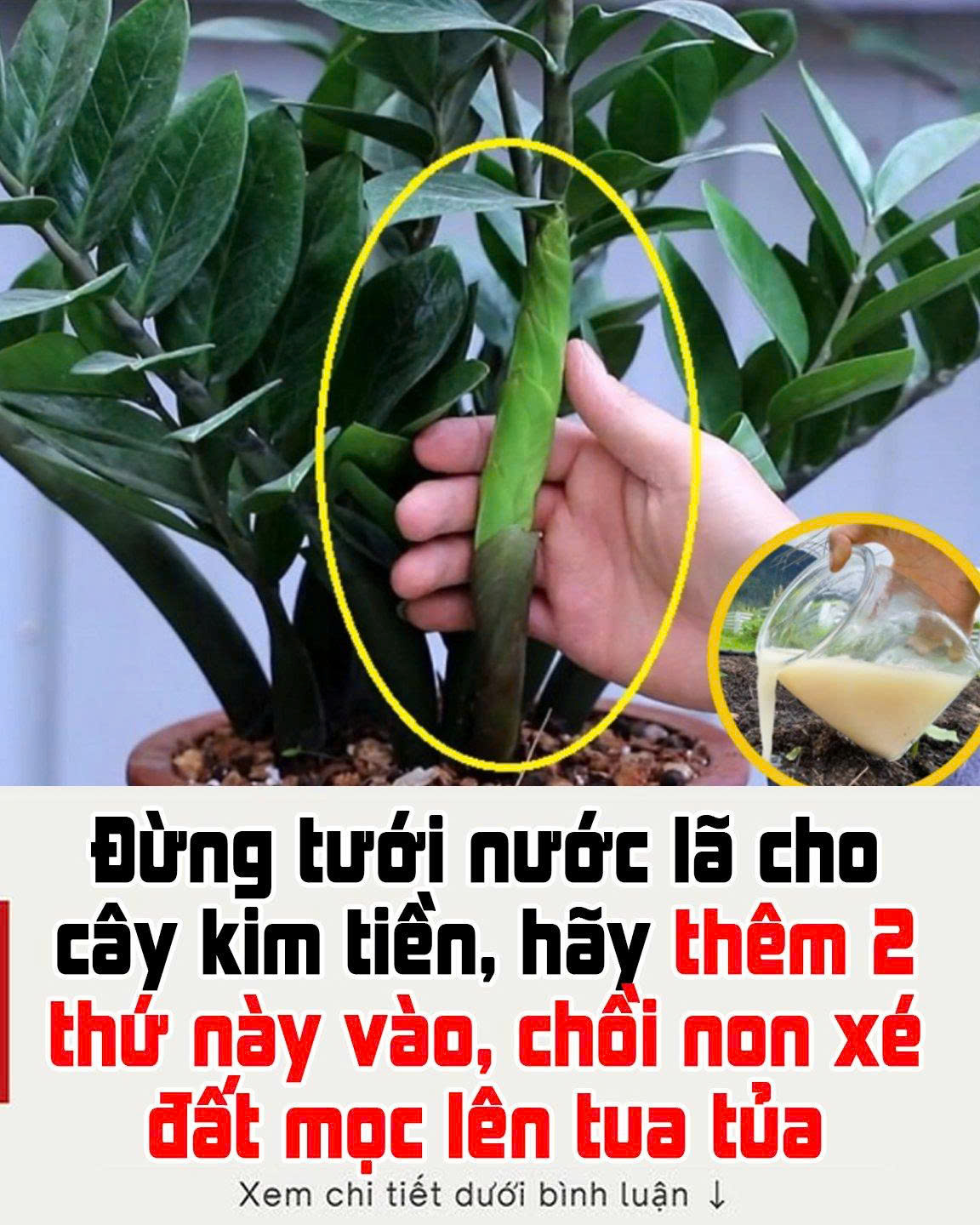Rất nhiều người chỉ tưới nước cho cây kim tiền mà căn bản không bón phân, kiểu bảo dưỡng này sẽ khiến cây “chết dần chết mòn”, chứ đừng nói tới việc cây mọc chồi mới. Nhưng bạn cũng không cần phải mua phân về bón làm gì, có thể cho thêm 2 thứ có sẵn trong nhà để cho vào nước tưới cây kim tiền.