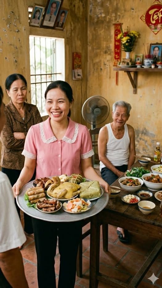 Trong phòng, chị Thu ngồi nhìn ánh đèn hắt qua khung cửa. Lần đầu tiên sau bao năm làm dâu, chị thấy lòng mình nhẹ bẫng. Không cần chửi mắng, không cần cãi vã, chỉ cần một mâm cơm và một nụ cười, cũng đủ để kẻ khinh miệt chị phải câm nín.
