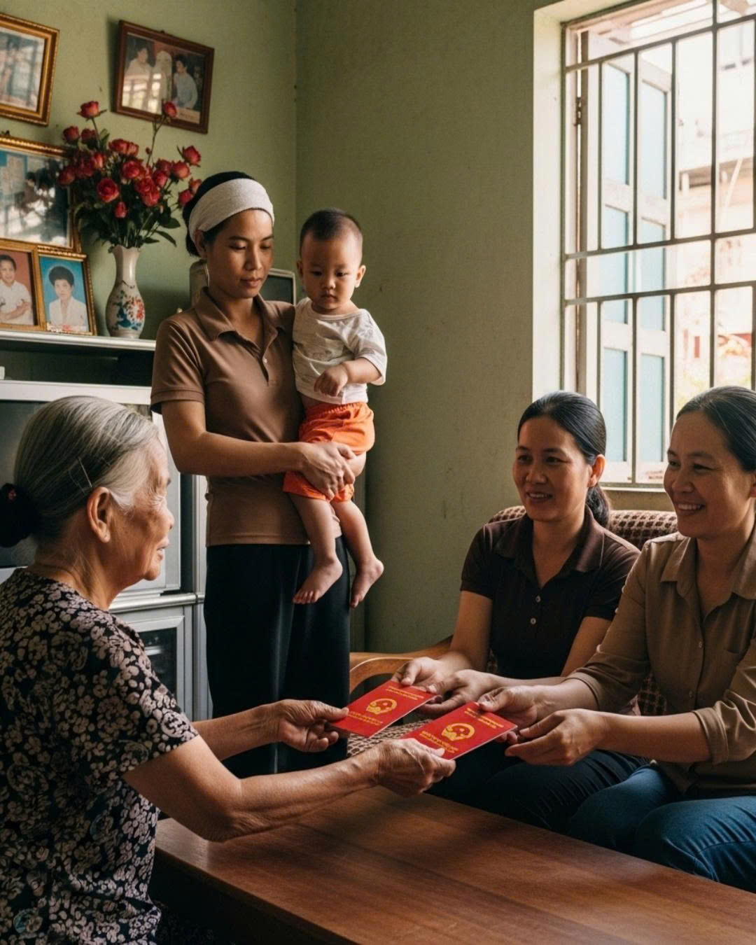 Bà Hường, mẹ chồng tôi, ngồi trên ghế tràng kỷ, tay mân mê chuỗi hạt. Hai bên là chị Hai và chị Ba, ánh mắt hau háu nhìn vào tờ giấy chứng nhận quyền sử dụng đất đặt trên bàn. “Thằng Minh vắn số, nó đi rồi thì thôi, con dâu chỉ là người dưng nước law”. – Giọng bà Hường ranh mãnh, không chút run rẩy. – “Cái nhà này giờ chỉ còn mẹ và hai chị. Mảnh đất 1000m2 mặt tiền thị trấn này là ông bà để lại, giờ mẹ quyết định sang tên, chia đôi cho cái Lan và cái Huệ. Mỗi đứa 500m2”.
